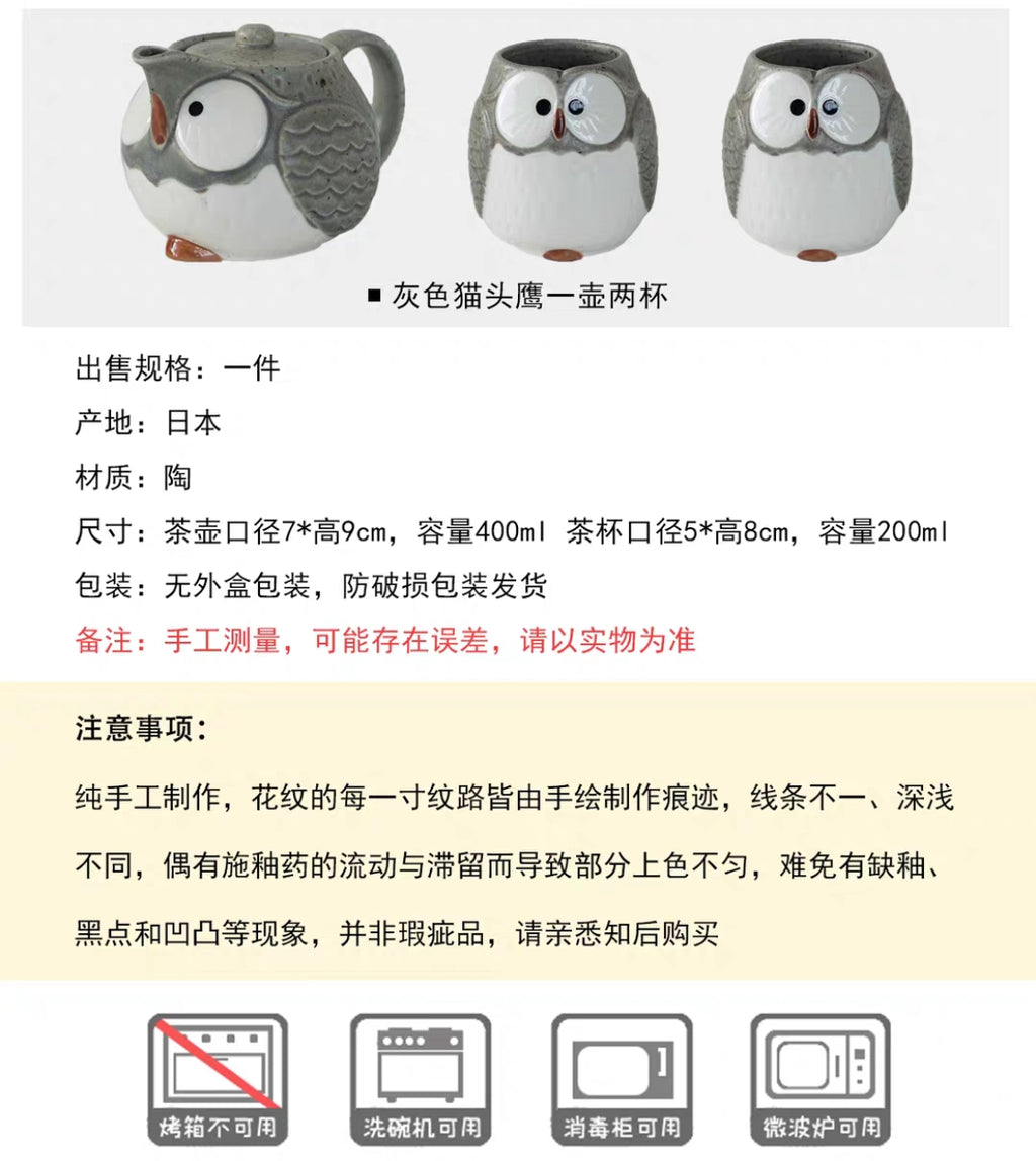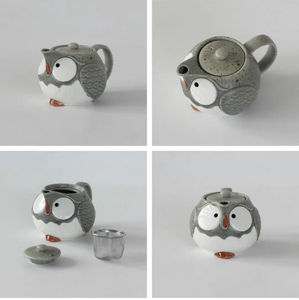 Description: This charming ceramic tea set features a delightful owl design with soft grey tones and a smooth, handcrafted finish. The rounded teapot and matching cups bring a sense of warmth and calm, making every tea moment feel special.