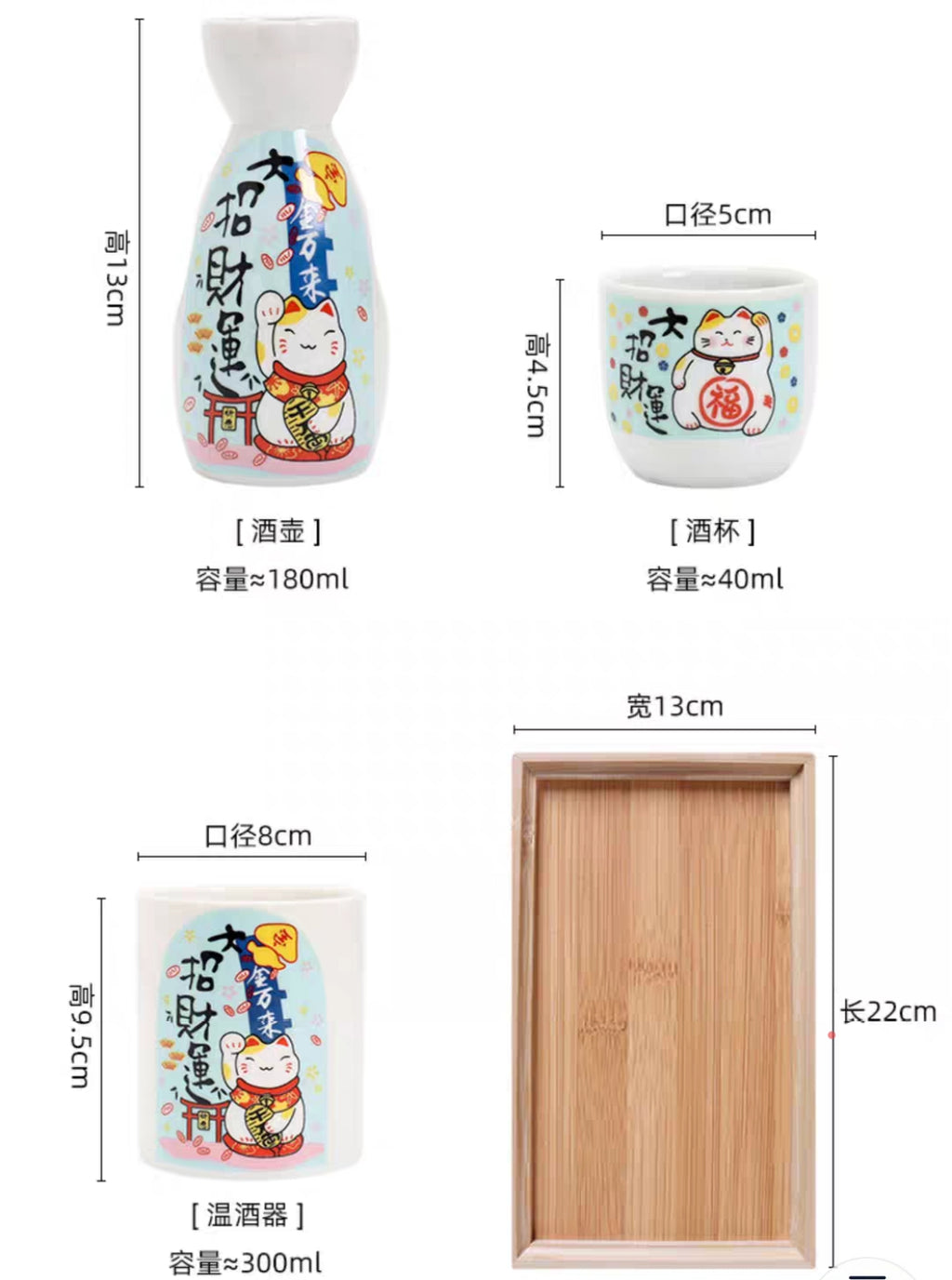Set Contain: A sake set of 1x sake bottle, 4x cups and 1x LX bottle (warmer)